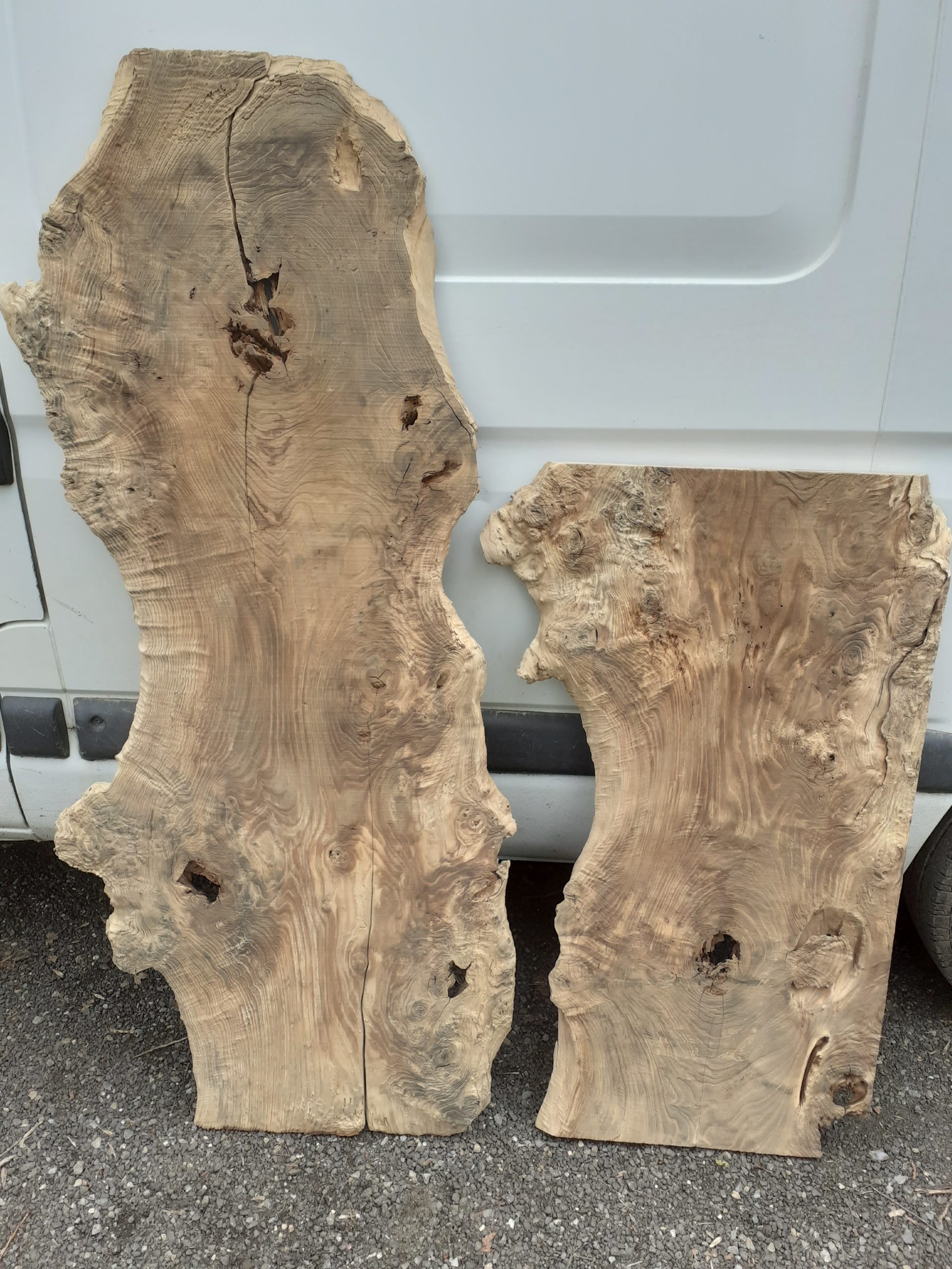 Aérogommage d’anciens plateaux en chêne brut pour réalisation de console.