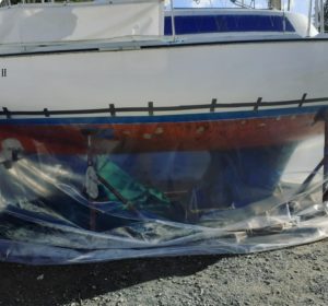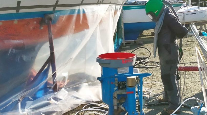Aérogommage d’antifouling sur Jeanneau poker Publié par Fabrice Communierréalisationaérogommage coque voilier, antifoulingPublié le 4 décembre 2021