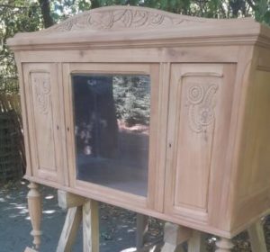 Aerogommage d’un haut de buffet en merisier.