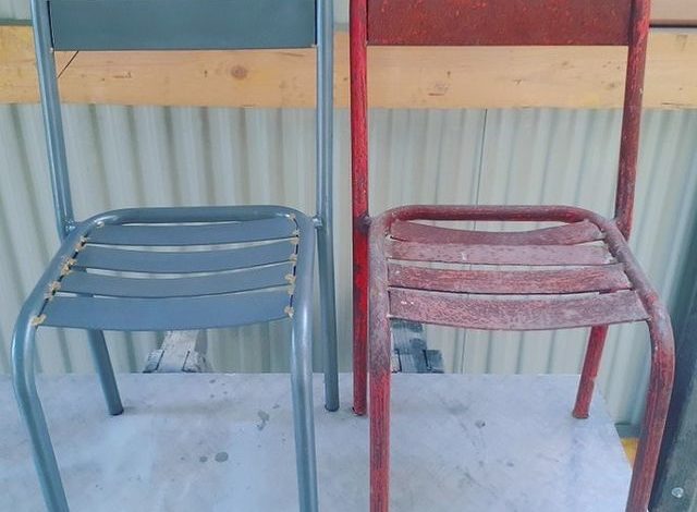 Remise à neuf de chaises métalliques Publié par Fabrice Communierréalisationaérogommage acier, aérogommage métal, chaise vintage, chaise-école ancienne, décapage acier, meuble vintage, relooking objet ancien, seconde vie brocantePublié le 13 juillet 2021