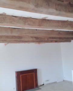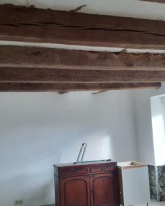 Rénovation maison ancienne Publié par Fabrice Communierréalisationaérogommage bois, aérogommage pierre, home staging, rénovationPublié le 4 décembre 2021 Sablage de poutres en chêne et mur en pierre