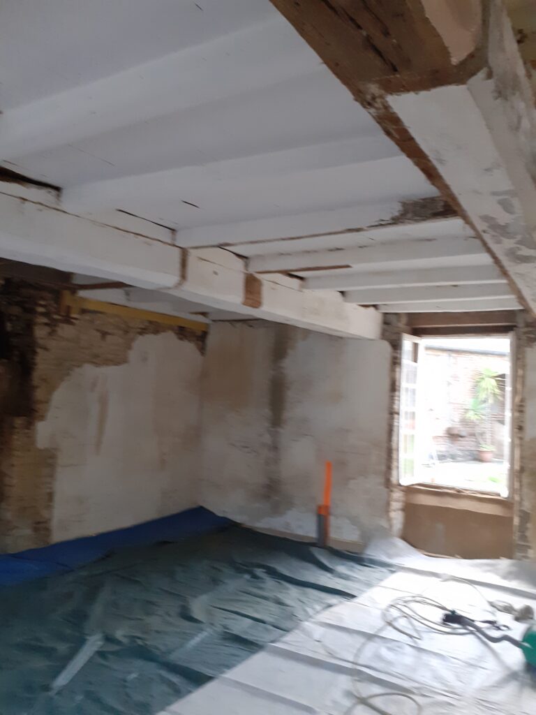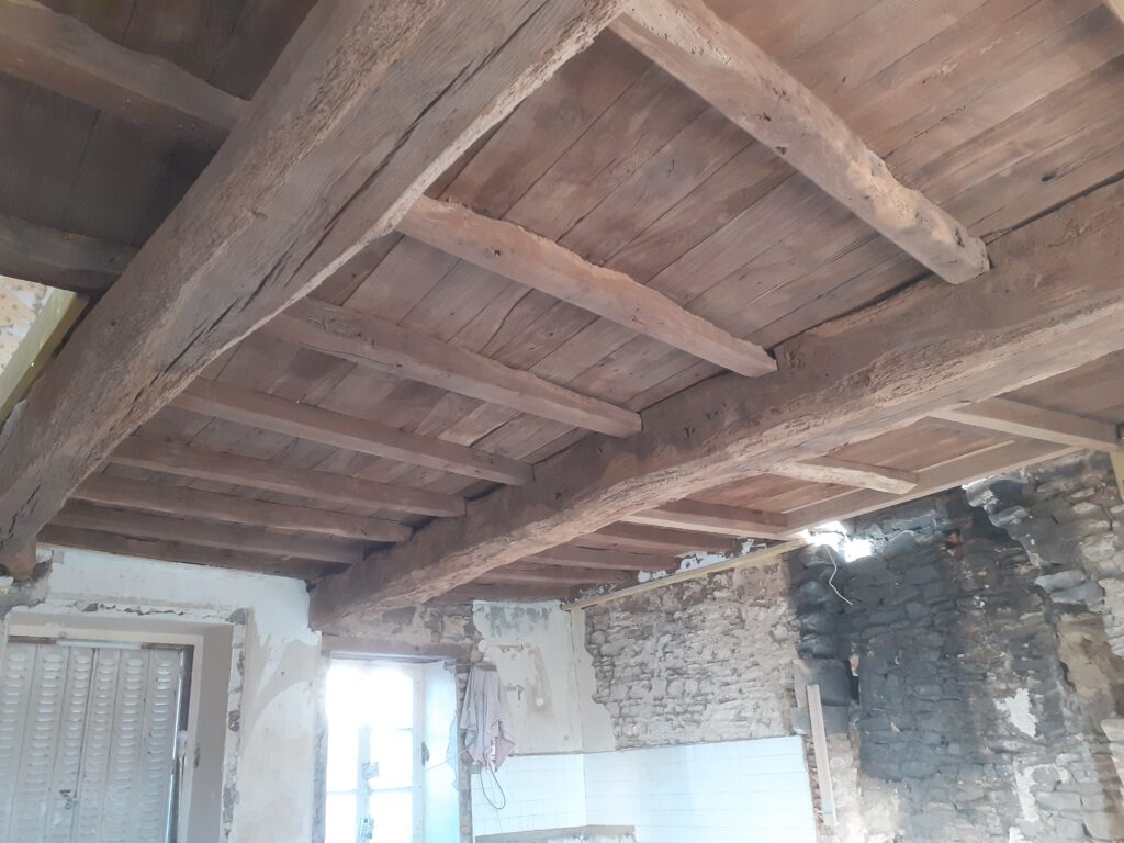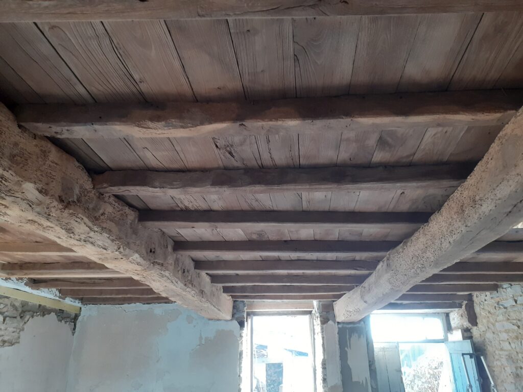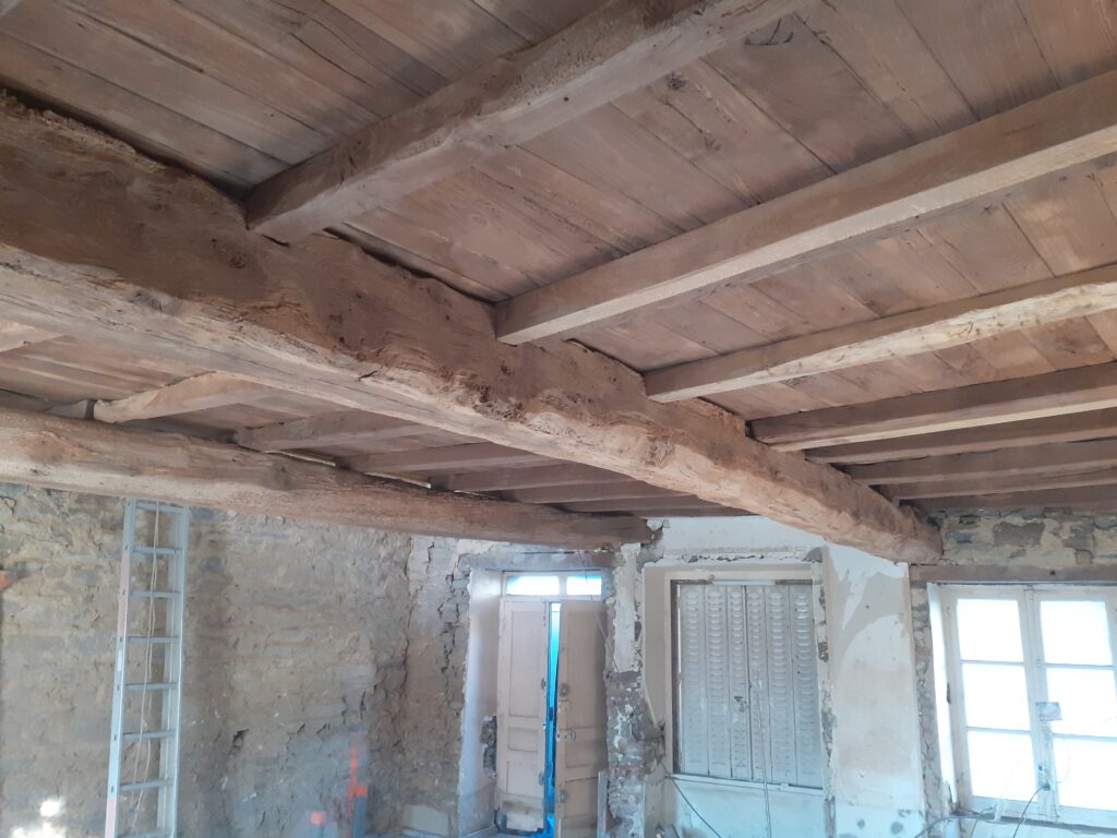 Sablage poutres et plancher en chêne