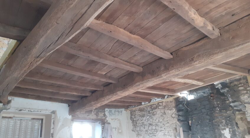 Sablage poutres et plancher en chêne
