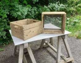 Deux caisses vintage dont l’une est grillagée avant et après un traitement d’aérogommage