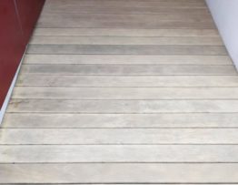 Aéogommage de poutres anciennes pour en faire un meuble télévision